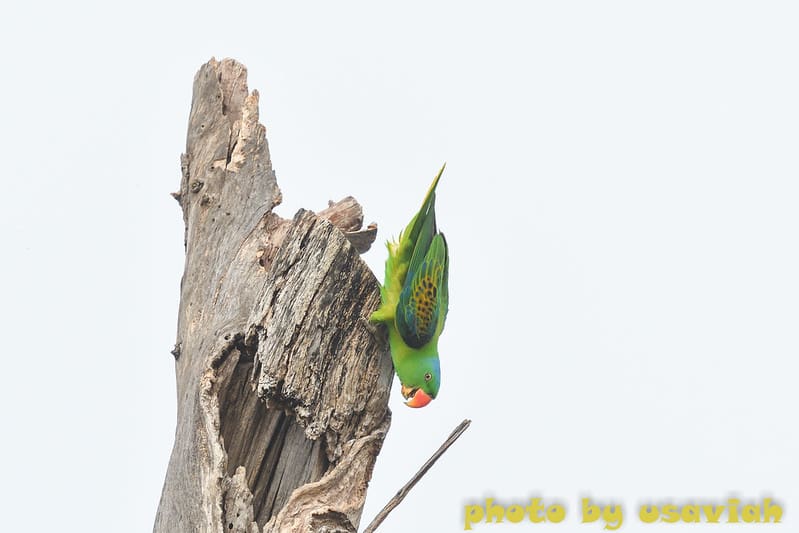 Found in flocks of up to a dozen birds, often found in the company of Golden-mantled Racquet-tails. Daily movements from roosting and feeding areas occur between dawn and dusk.