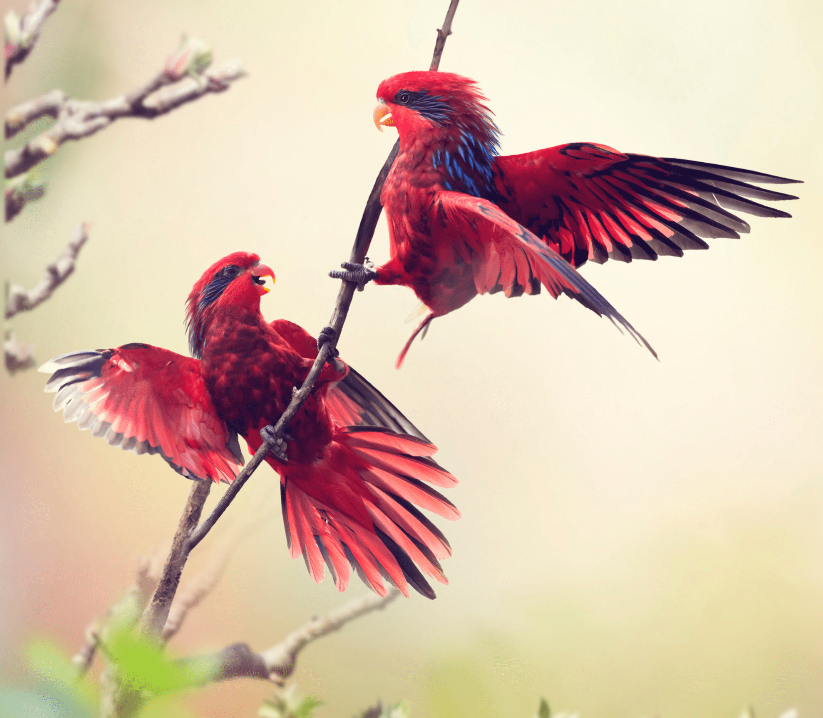 Lories and lorikeets have specialized tongues for feeding on nectar. Tiny hair-like projections called papillae form a U-shape on the end of the tongue, which the birds use to soak up the nectar.
