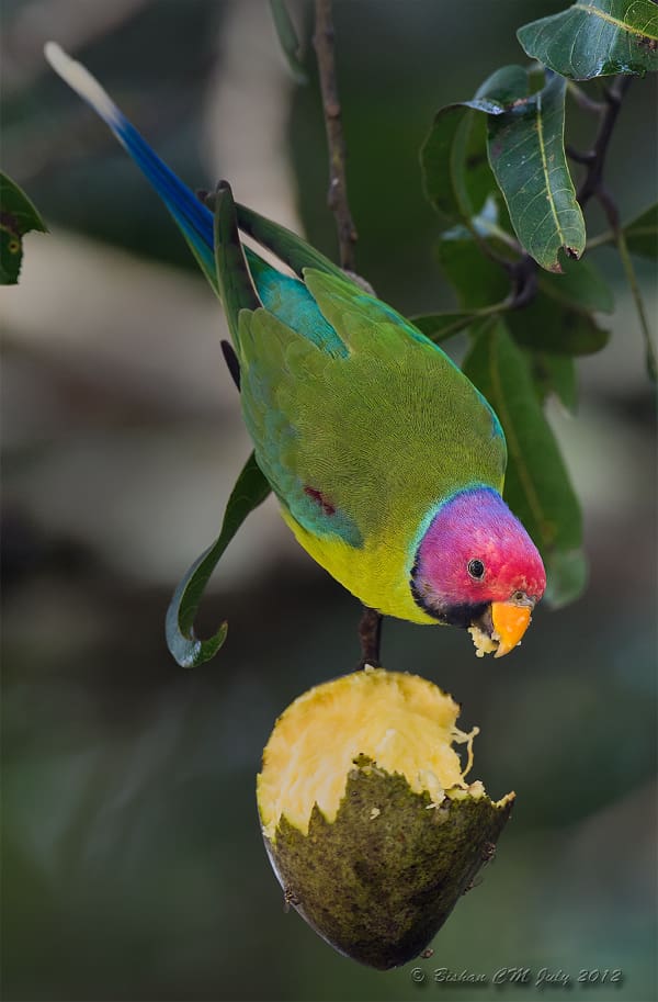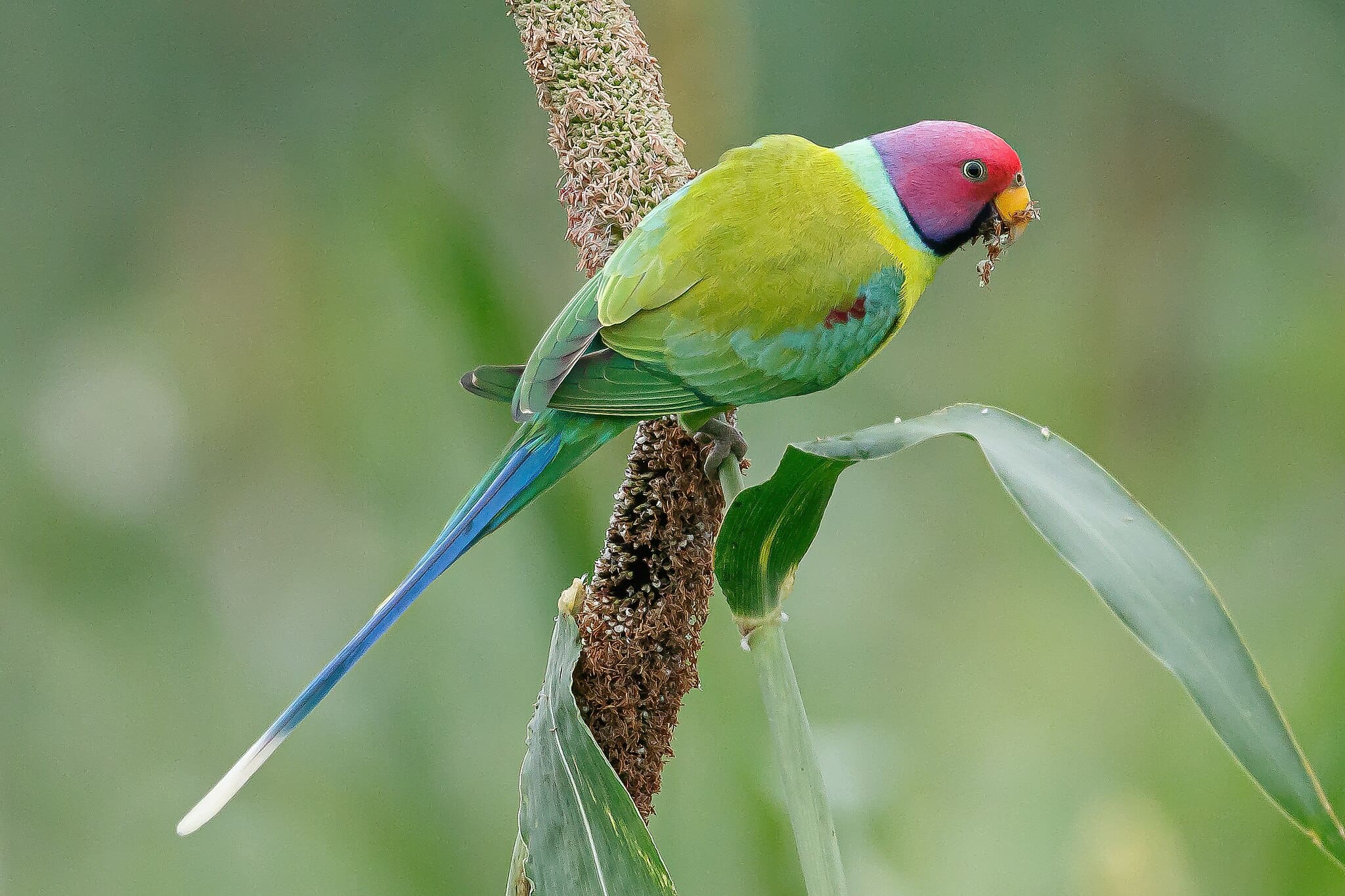 The Plum-headed Parakeet eats more fruits than most Asian parakeets.