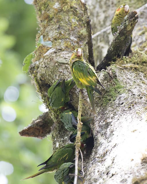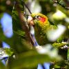 The only member of its genus found in Central America. Seen in pairs or more often groups of 5-15 birds. May make daily movements down the mountains in response to food availability, returning to higher ground to roost. Feeds in the canopy or in smaller trees and shrubs near the forest edge.