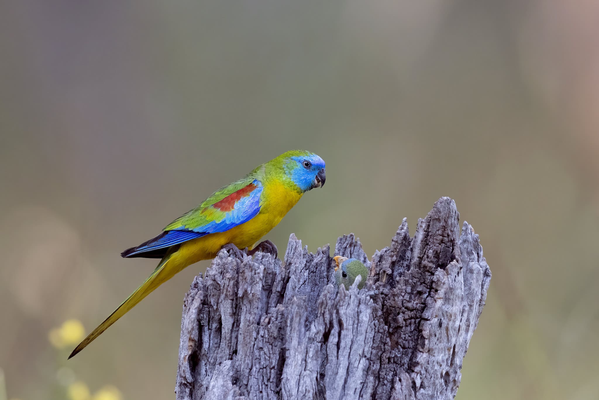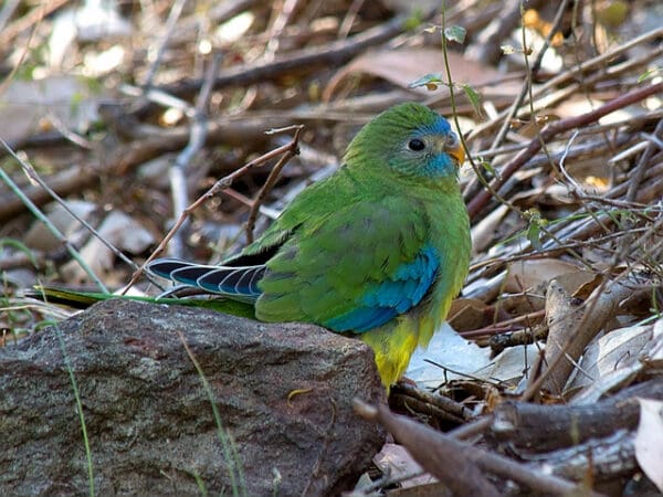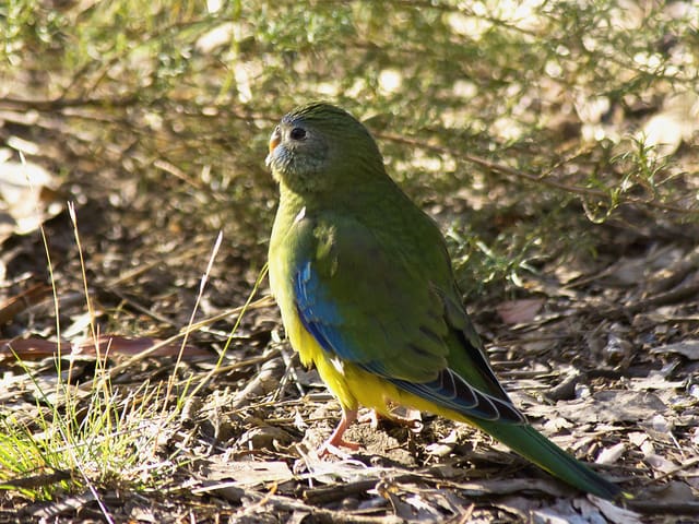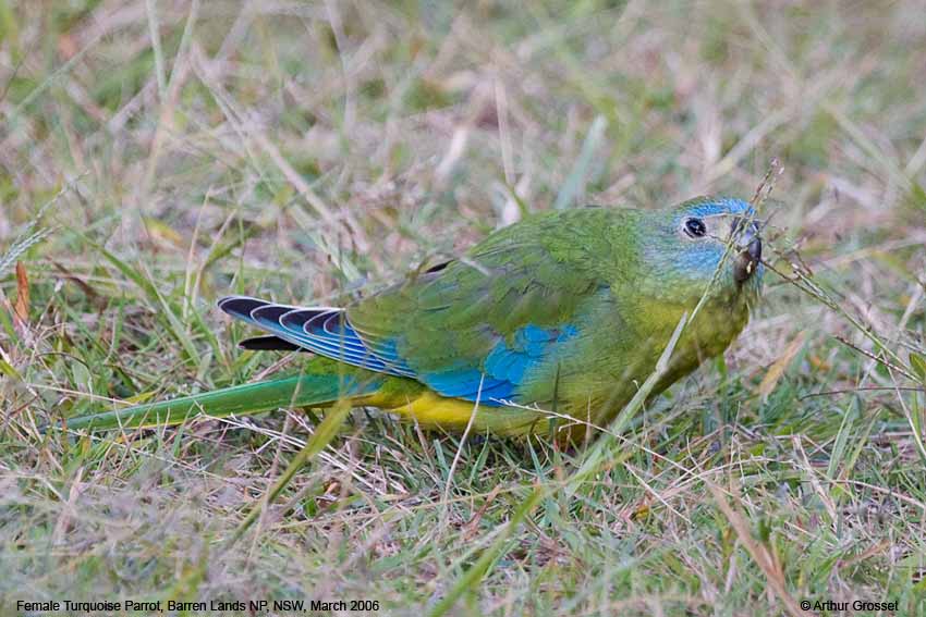 The female Turquoise Parrot will tuck leaves into the feathers of her rump and carry them to her nest.