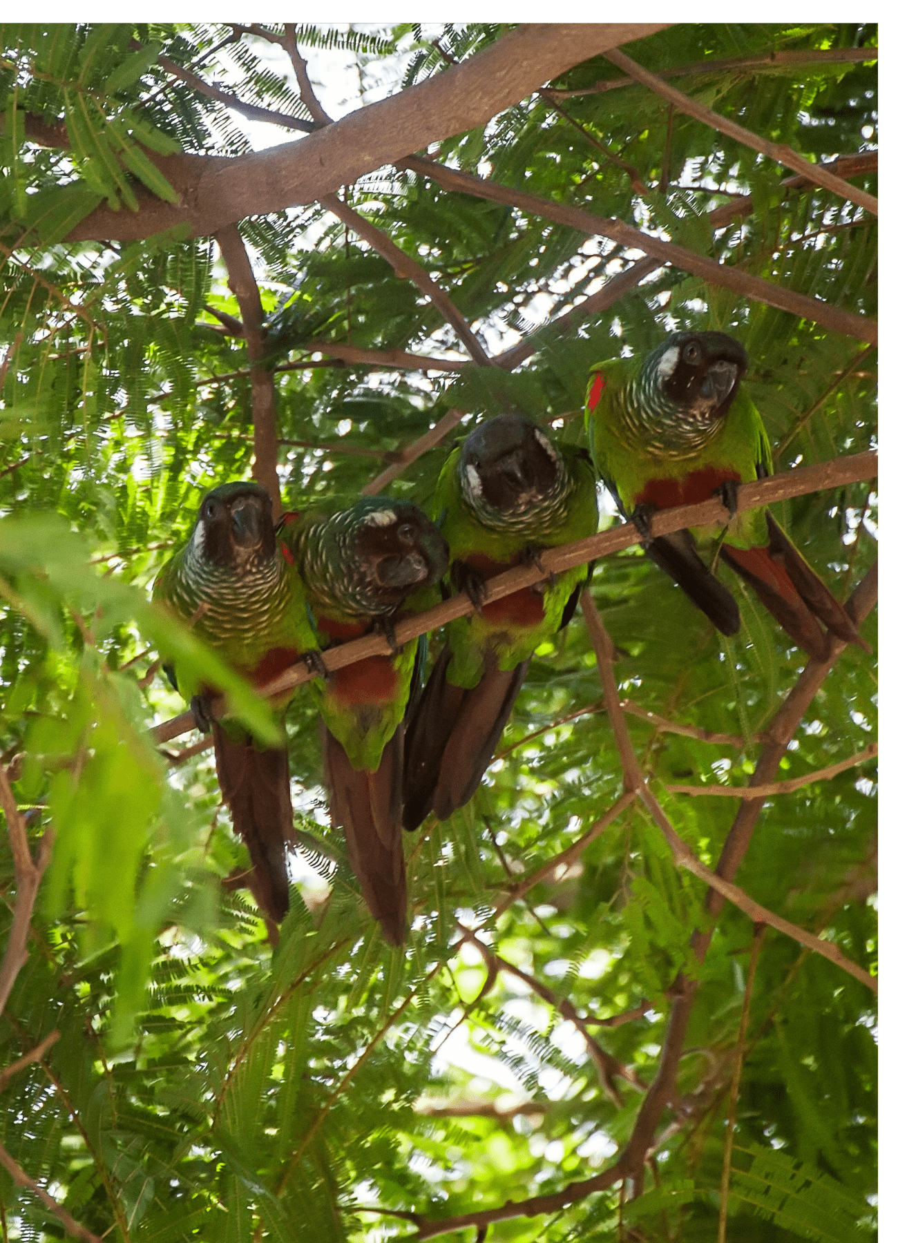 Pyrrhura conures have more swift, undulating flight, whereas Eupsittula conures’ flight is more straight and direct.