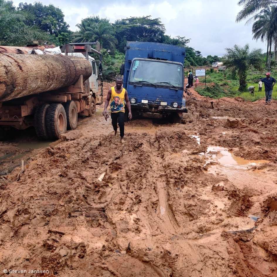 Despite challenging conditions (getting stuck in the mud—repeatedly!), the team arrived just in time for dusk greeted by the joyful calls of Timneh Parrots settling into a few dozen trees in the village to roost.