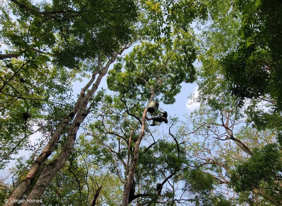 During weekly health checks, the team scale heights to access artificial nest boxes. Each chick is weighed and checked to ensure they’re thriving before being safely returned to their nests, where their devoted parents will continue to care for them until they are ready to fledge and fly.