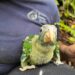 A Fischer’s Lovebird already sampled for it’s DNA, rung with color identifiable rings, and ready for release back to join it’s flock.