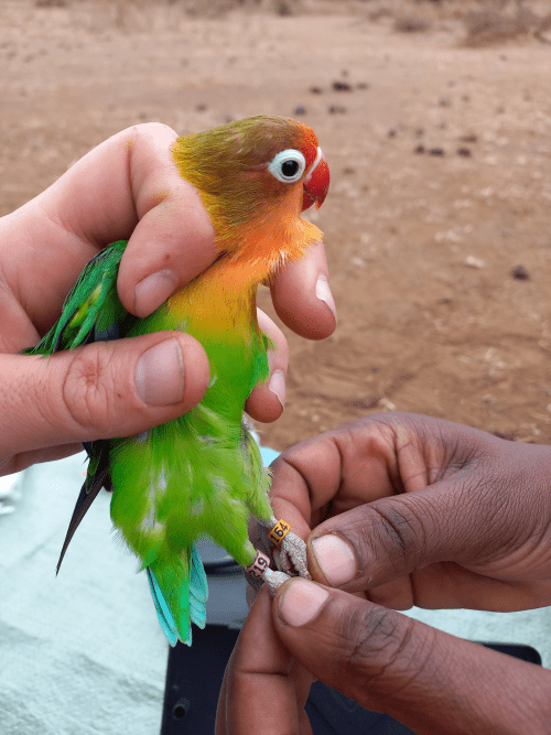 As promised in the previous blog, the lovebird journey continues in 2022 with exciting and important projects involving Fischer’s and Masked Lovebirds, the two species well known as companion birds. In August and September, I travelled to Tanzania to collaborate with a local team to collect samples and field data to understand more about the lives of these two charismatic species in the wild and the threats they face.