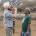 Swithin Kashule of BirdWatch Zambia examiing a Lilian’s Lovebird in the field
